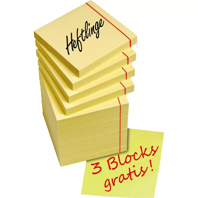 Produktinformationen "9 + 3 GRATIS! 12 Blöcke Haftnotizen 100 x 75 mm, gelb, Block: 100 Blatt"