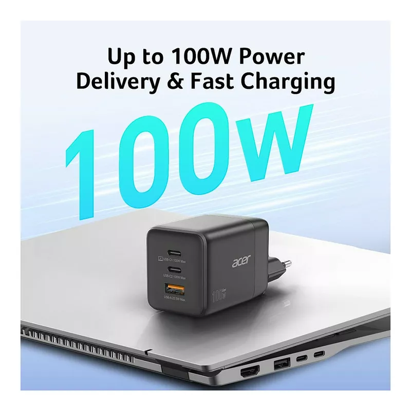 Acer GaN 100w 2 x USB-C + 1x USB-A ports. black