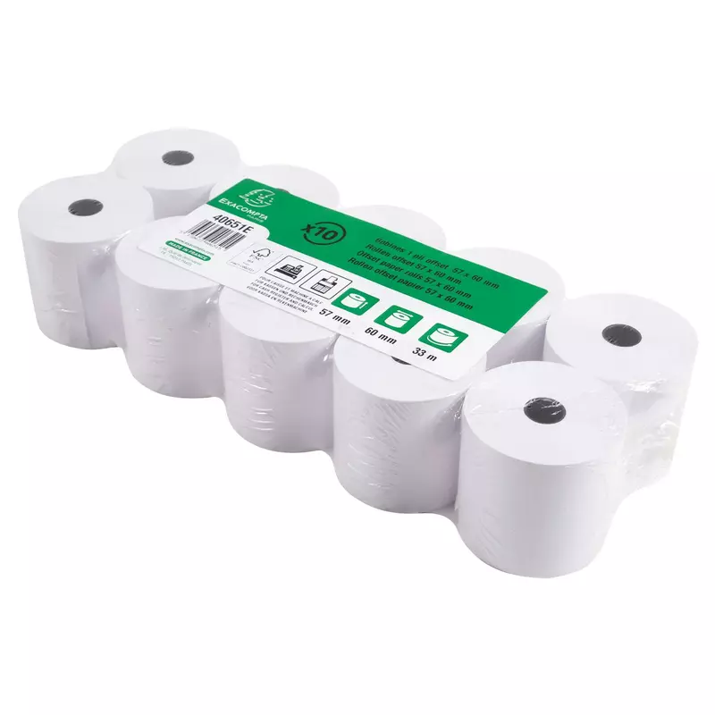 60g Rollenformat: 57 mm Breite und 60 mm Durchmesser. Lauflänge (+