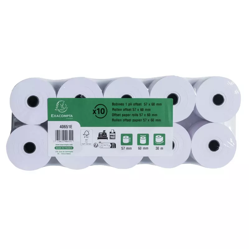 | Alleinstellungsmerkmal: | Rollenformat: 57 mm Breite und 60 mm Durchmesser. Lauflänge (+ oder - 2m): 30 m. Standard-Kern von 12 mm. |