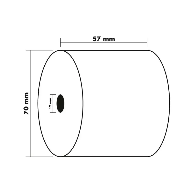 60g Rollenformat: 57 mm Breite und 70 mm Durchmesser. Lauflänge (+
