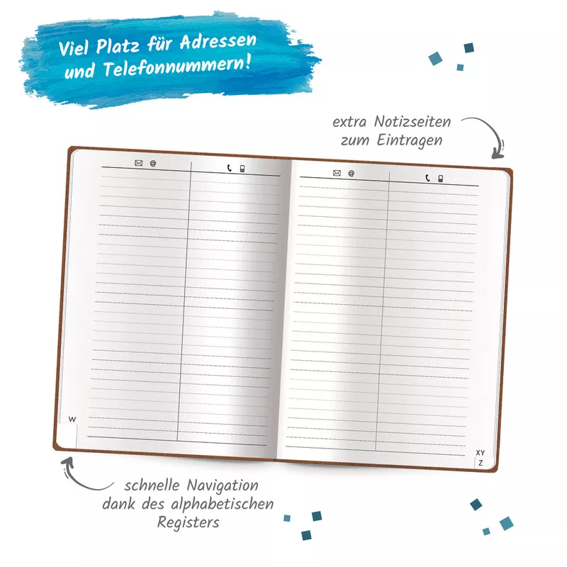 Egal ob auf Reisen oder im Alltag: Dieses handliche Adressbuch im