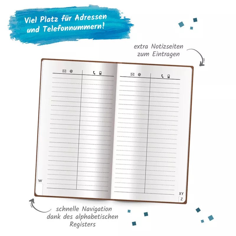 Egal ob auf Reisen oder im Alltag: Dieses handliche Adressbuch im