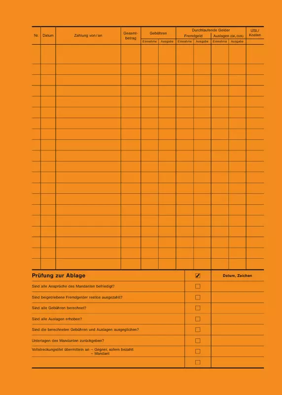 Alle Informationen zur Akte auf einen Blick: Handaktenbogen zur Aufnahme der Mandatsdaten und der Buchhaltungsinformationen.