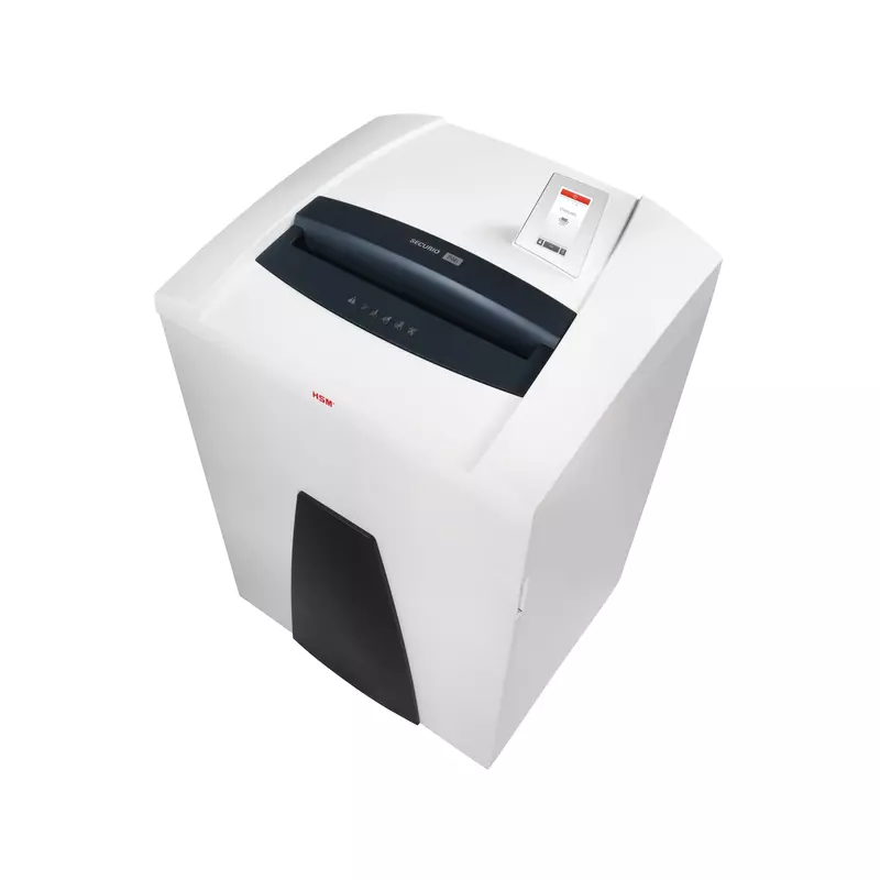 Der Top-Aktenvernichter der HSM SECURIO Linie mit IntelligentDrive und Touchdisplay. Dieses Kraftpaket mit 205 Litern Auffangvolumen verarbeitet zuverlässig große Papiermengen und ist damit bestens geeignet für Abteilungen. Innovatives Antriebs- und Bedienkonzept IntelligentDrive bietet die Betriebsmodi Silent, Standard und Performance für eine effiziente und komfortable Datenvernichtung. Intuitive Bedienung und Menüführung über das hochauflösende Touchdisplay. Sehr energiesparend durch Stand-by und Abschalt-Automatik. Intelligente Behebung von Papierstau. Das Gerät erkennt frühzeitig ob zu viel Papier zugeführt wurde und reagiert selbständig. Hochwertige Materialien und Qualität "Made in Germany" für Sicherheit und Langlebigkeit. Mit 3 Jahren Garantie. Schneidwellen aus gehärtetem Vollstahl. Partikelschnitt mit integriertem automatischem Öler, für konstant hohe Schnittleistung. Der kraftvolle Motor ermöglicht dauerhaften Betrieb. Bei Druck auf das Sicherheitselement schaltet das Gerät automatisch ab. Lichtschranke für automatischen Start/Stopp. Mobil auf Rollen fahrbar. Komfortables Entnehmen und Leeren des herausziehbaren Mehrweg-Auffangbeutels. Tastensperre verhindert unbeabsichtigte Nutzung. Hochwertiger Holzunterschrank mit Tür. Füllstandkontrolle durch Sichtfenster.