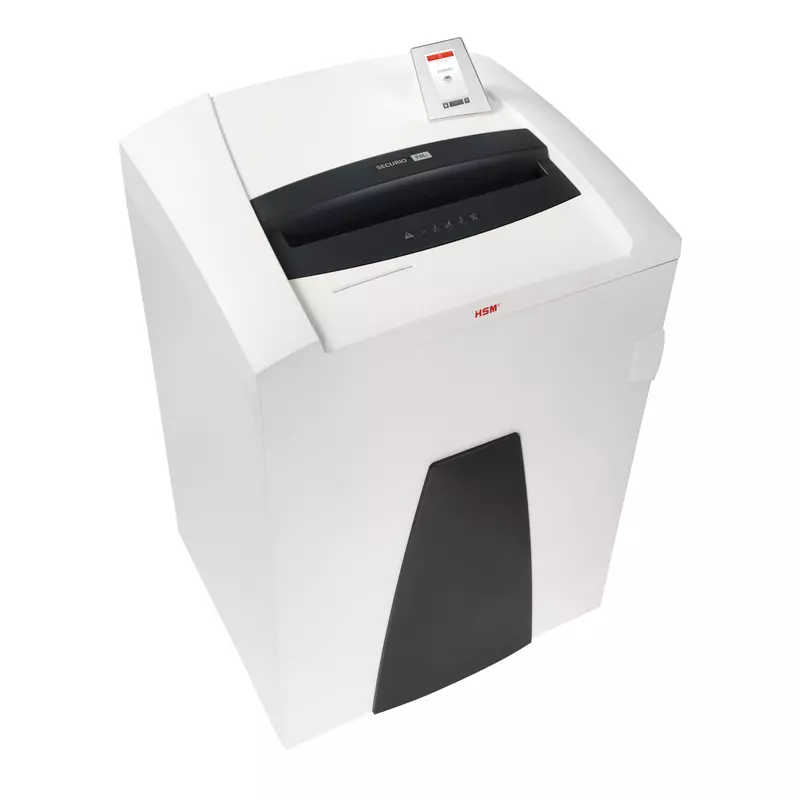 Der Top-Aktenvernichter der HSM SECURIO Linie mit IntelligentDrive und Touchdisplay. Dieses Kraftpaket mit 205 Litern Auffangvolumen verarbeitet zuverlässig große Papiermengen und ist damit bestens geeignet für Abteilungen. Innovatives Antriebs- und Bedienkonzept IntelligentDrive bietet die Betriebsmodi Silent, Standard und Performance für eine effiziente und komfortable Datenvernichtung. Intuitive Bedienung und Menüführung über das hochauflösende Touchdisplay. Sehr energiesparend durch Stand-by und Abschalt-Automatik. Intelligente Behebung von Papierstau. Das Gerät erkennt frühzeitig ob zu viel Papier zugeführt wurde und reagiert selbständig. Hochwertige Materialien und Qualität "Made in Germany" für Sicherheit und Langlebigkeit. Mit 3 Jahren Garantie. Schneidwellen aus gehärtetem Vollstahl. Partikelschnitt mit integriertem automatischem Öler, für konstant hohe Schnittleistung. Der kraftvolle Motor ermöglicht dauerhaften Betrieb. Bei Druck auf das Sicherheitselement schaltet das Gerät automatisch ab. Lichtschranke für automatischen Start/Stopp. Mobil auf Rollen fahrbar. Komfortables Entnehmen und Leeren des herausziehbaren Mehrweg-Auffangbeutels. Tastensperre verhindert unbeabsichtigte Nutzung. Hochwertiger Holzunterschrank mit Tür. Füllstandkontrolle durch Sichtfenster.
