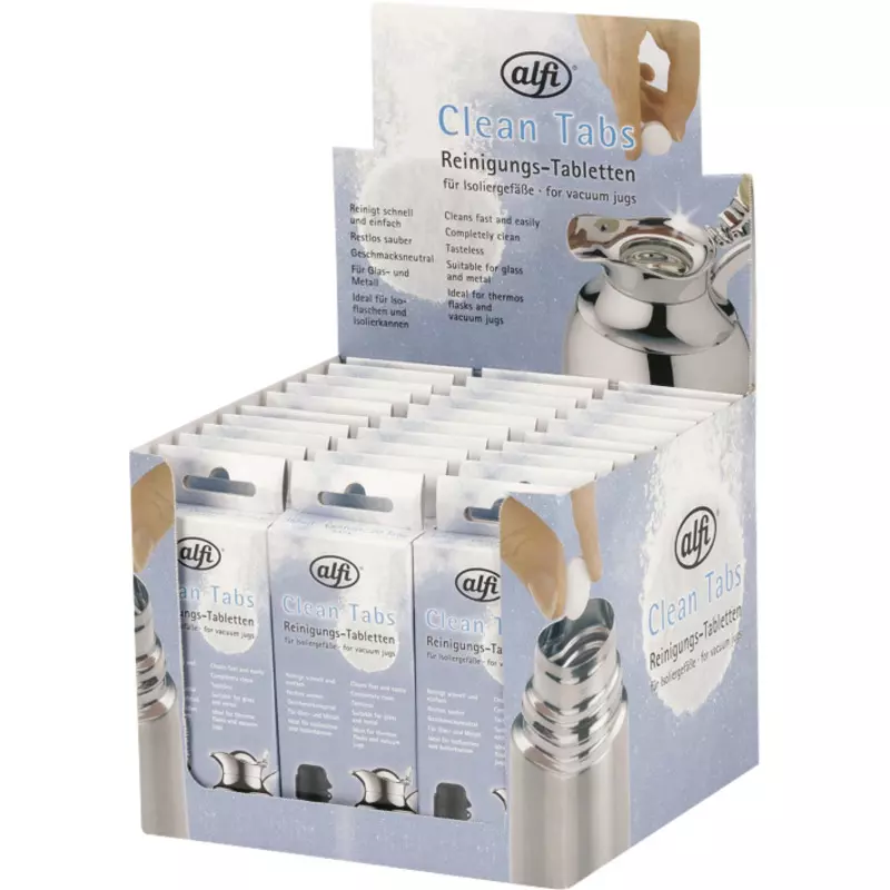 alfi Reinigungs-Tabletten Clean Tabs reinigen Ihre Isolierkannen, -flaschen und Trinkfalschen schnell und einfach restlos sauber. Reinigt sogar hartnäckige Verschmutzungen! Inhalt: 20 Tabletten.
