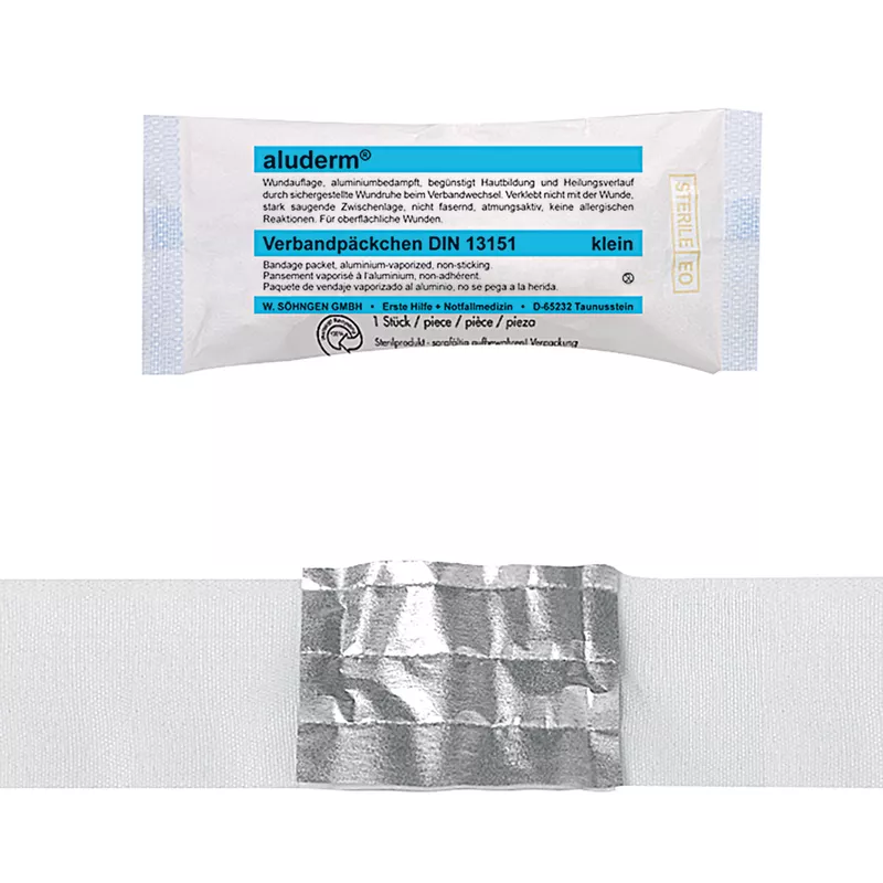 Produktinformationen "aluderm Verbandpäckchen klein 3mx6cm Kompresse 6x8cm"
