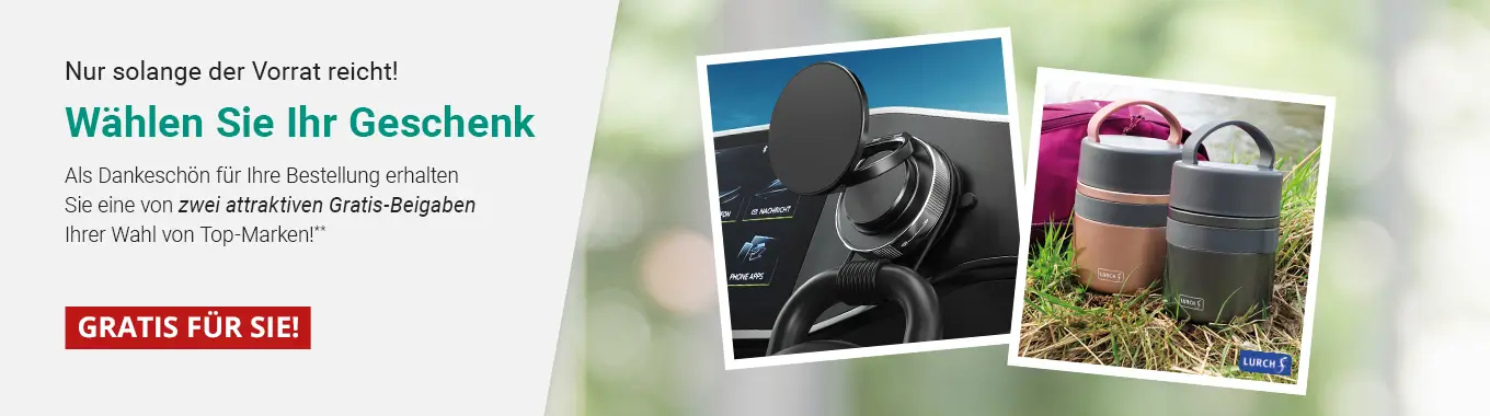 Wählen Sie jetzt Ihren Favoriten aus den folgenden zwei attraktiven Gratis-Beigaben mit verschiedenen Mindestbestellwerten aus: