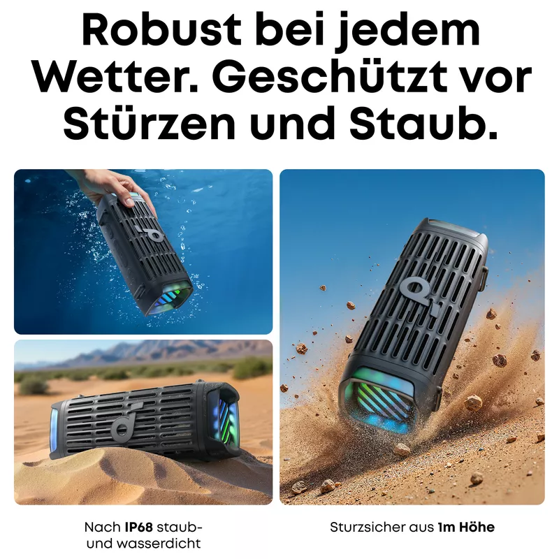 ANKER Soundcore Boom 3i black robuster Outdoor Bluetooth Lautsprecher IP68 50W BassUp 16h Spielzeit Lichtshow TWS-Stereo