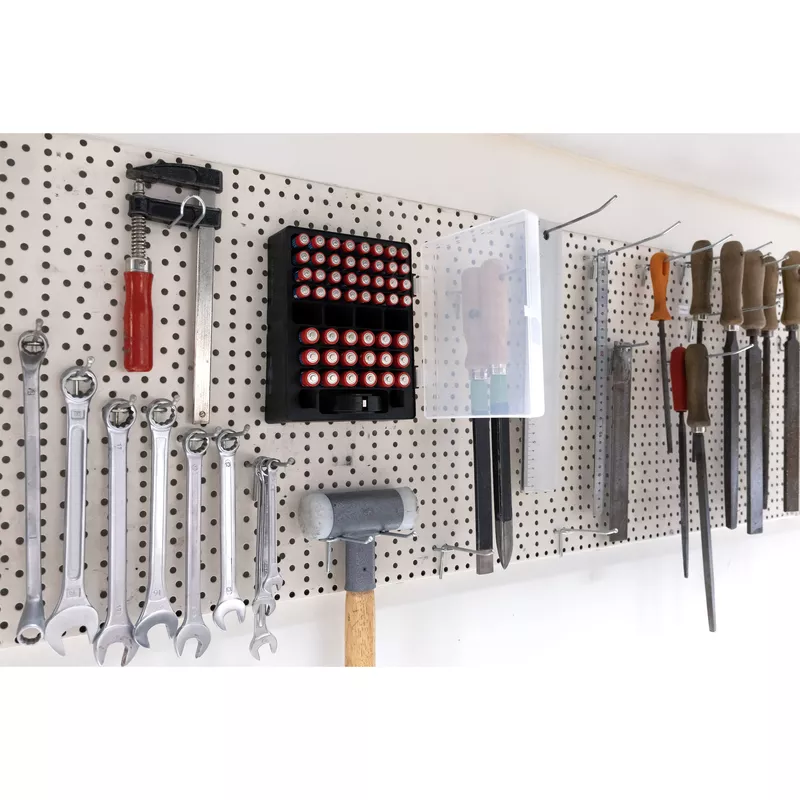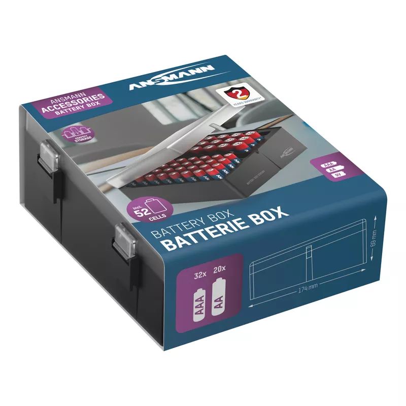 Taschenlampen und weitere Geräte. Stabile Batterie-Vorratsbox aus