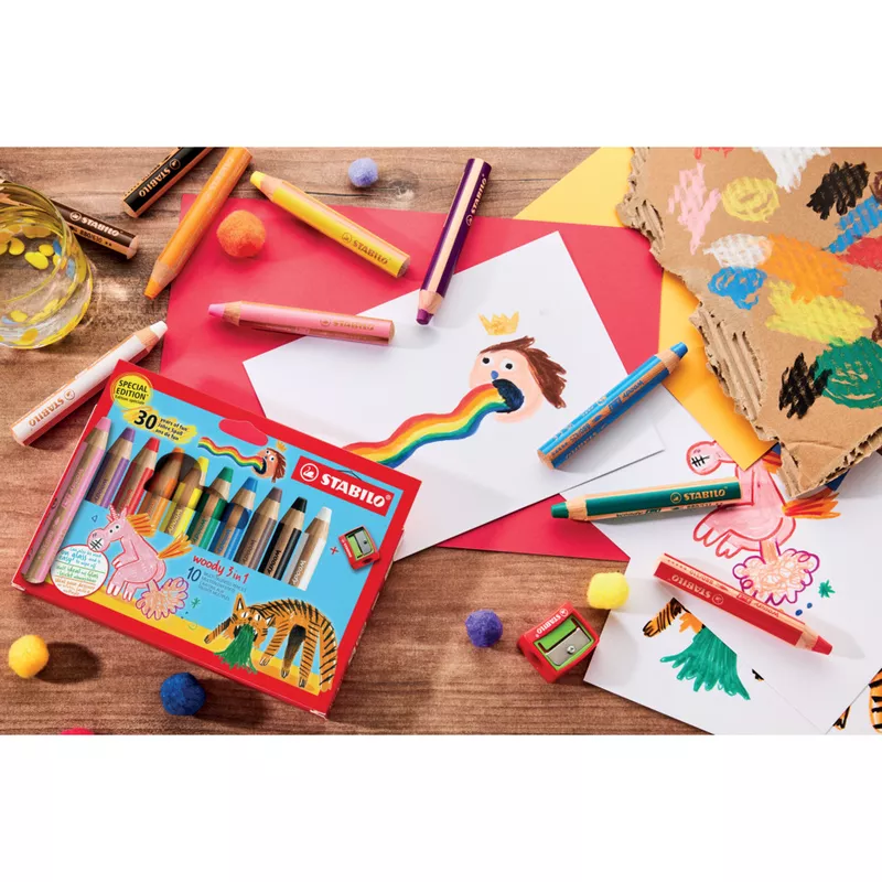Aquarellfarbstift 10Stück woody 3 in 1 sort Einhorn + Tiger STABILO EO880/10-3