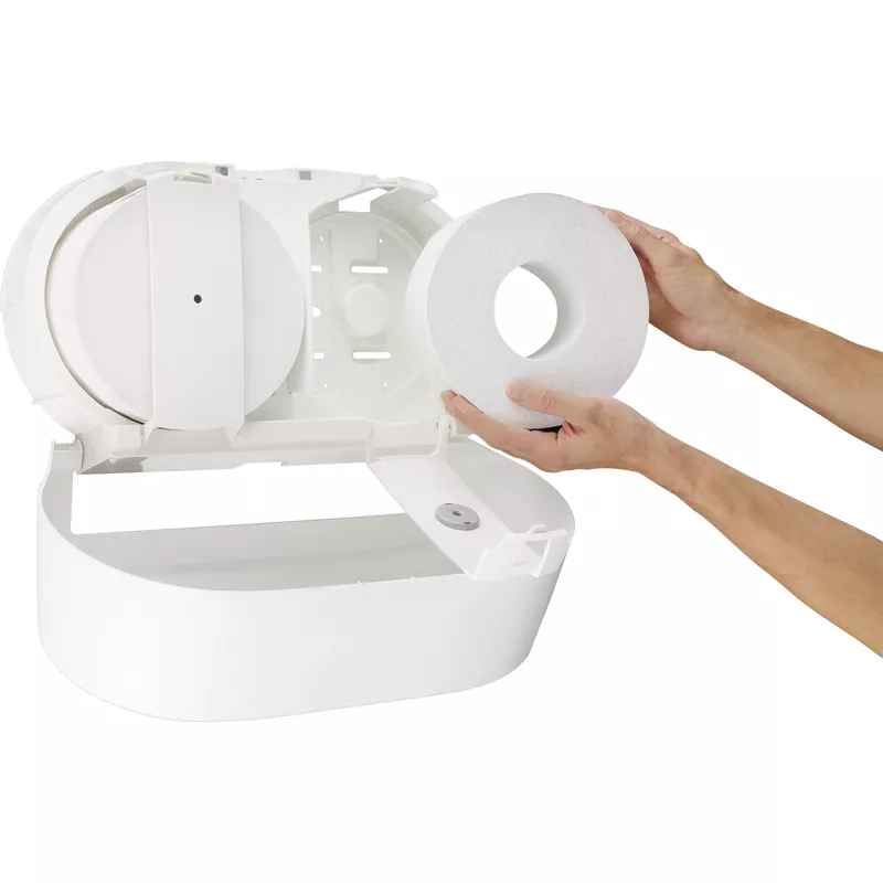 Toilettenpapier Spender für zwei Rollen mit Zentralentnahme bietet