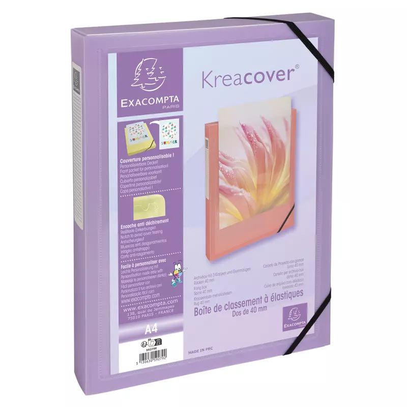 Archivbox A4 PP, Rückenbreite 40mm, Kreacover Pastell - Farben sortiert