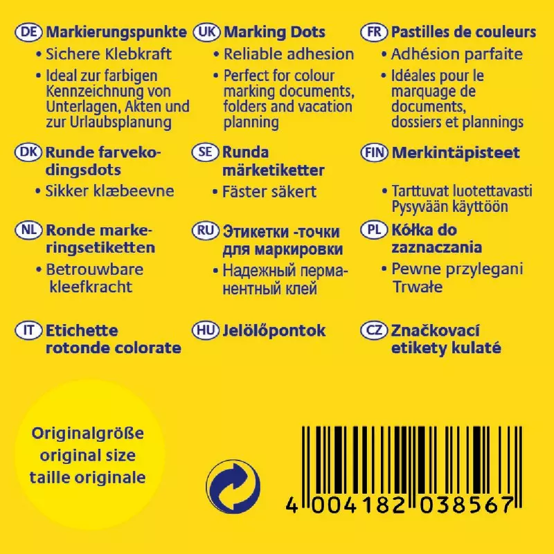 Die gelben, selbstklebenden Markierungspunkte 3856 mit einem