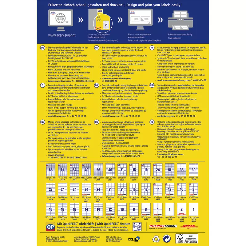 ultragrip® macht ultra-effizient: die innovative ultragrip®-Technologie mit dem spürbaren Profil auf dem Etikettenbogen gewährleistet einen ultra-präzisen und absolut staufreien Druckerdurchlauf. Regelmäßig überprüft und für Laser bestätigt durch TÜV Süd. Ideal auch für Seriendruck und größere Druckaufträge. Geeignet für alle Laser- und Inkjet-Drucker. So arbeiten Sie effizient wie stressfrei und schaffen sich wertvolle Zeit für die wirklich wichtigen Dinge.