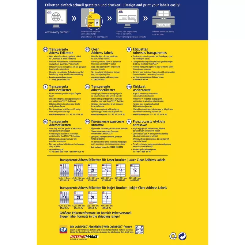- Sparen Sie Zeit mit anwendungsfreundlichen Druckvorlagen und benutzerfreundlicher Software - kostenloser Download unter www.avery-zweckform.eu
