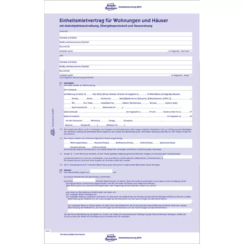 Der Einheitsmietvertrag 2873 von AVERY ZWECKFORM im DIN A4 Format