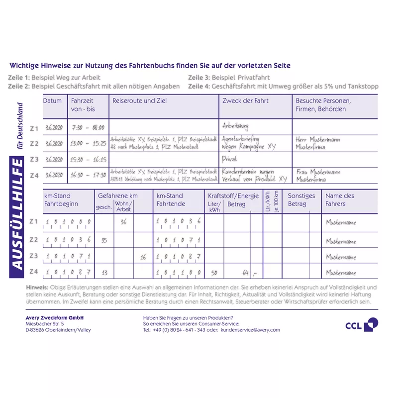 unserem Fahrtenbuch eine Ausfüllhilfe, Gesamtübersicht sowie eine