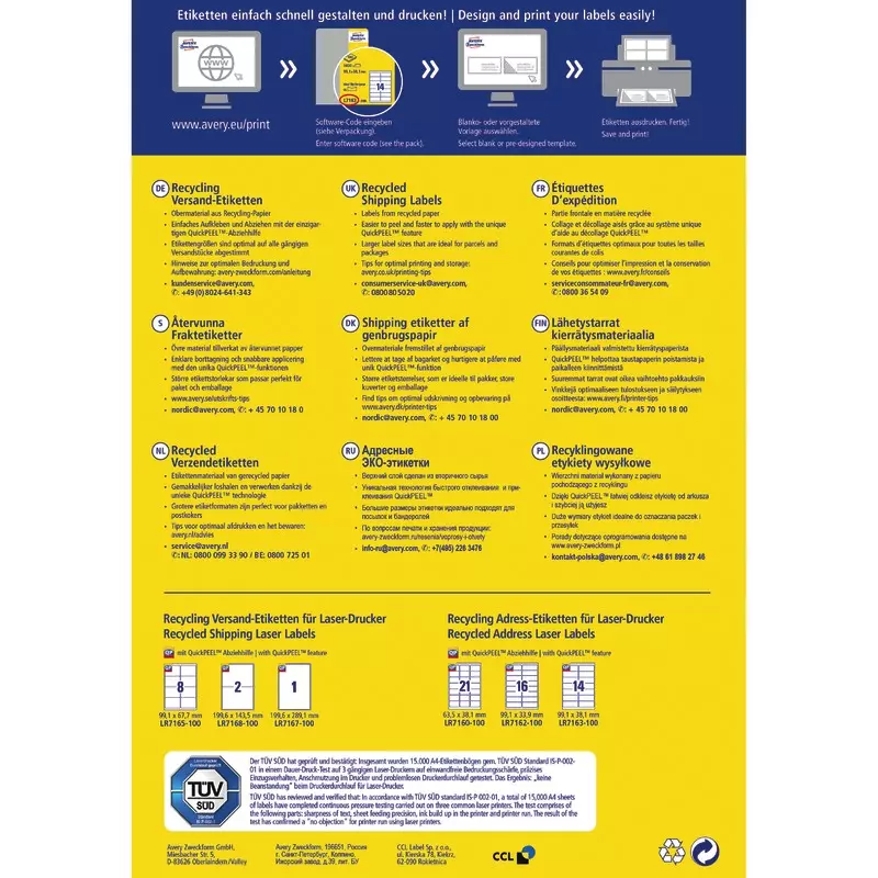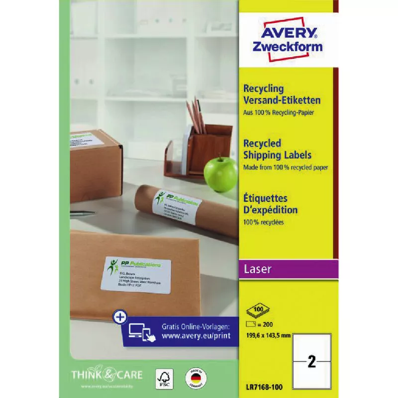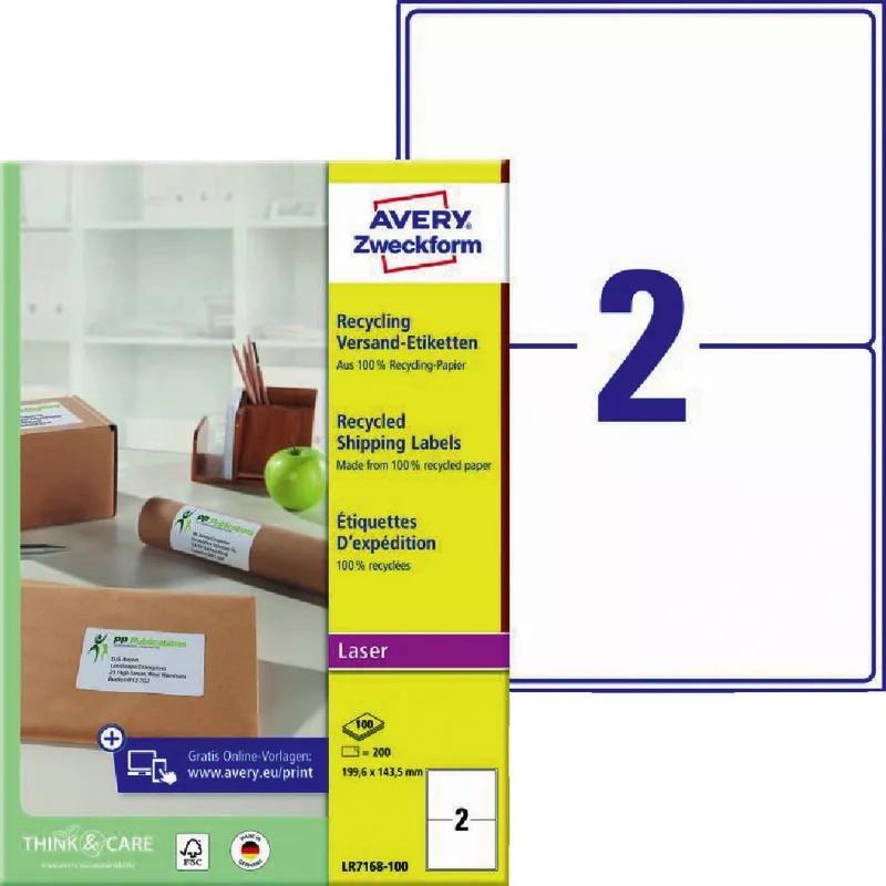 Produktinformationen "AVERY® Zweckform LR7168-100 Recycling Versand-Etiketten, 199,6 x 143,5 mm, 100 Bogen/200 Etiketten, naturweiß"