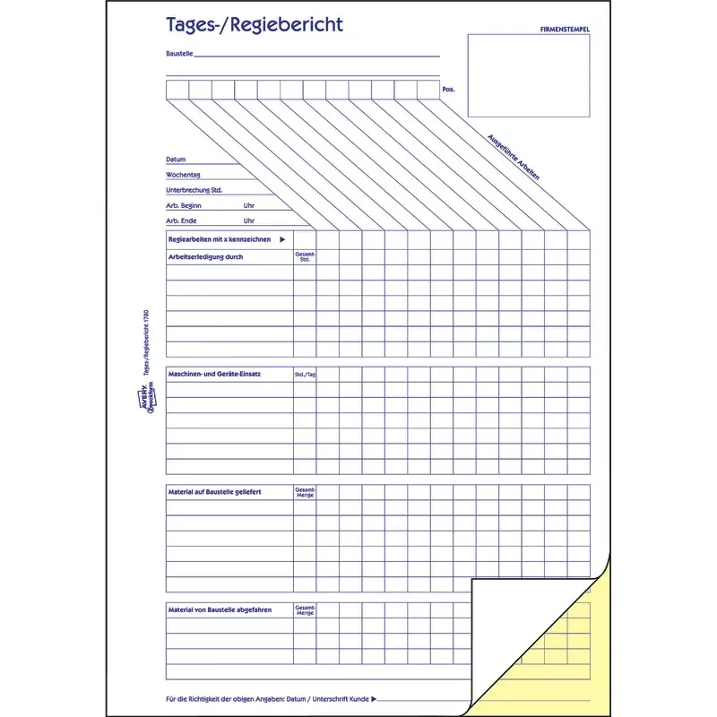 Unverzichtbar auf dem Bau - die Avery Zweckfom Tages-Regieberichte