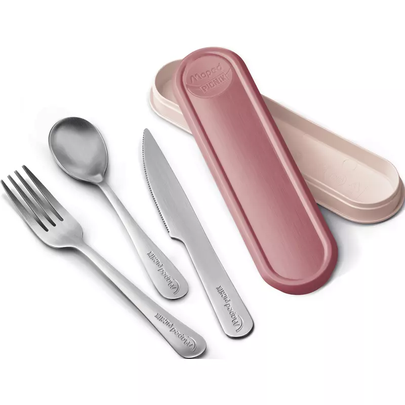 Besteck-Set Adult CONCEPT · Bestehend aus: Besteck-Dose, Messer, Gabel, Teelöffel · Lebensmittelecht, BPA-frei, spülmaschinengeeignet, passt in den Lunch Teller · Werkstoff: Besteck aus Edelstahl 304, Box aus PP · Größe (B x H x T): 167 x 24 x 44 mm · Farbe: brick red