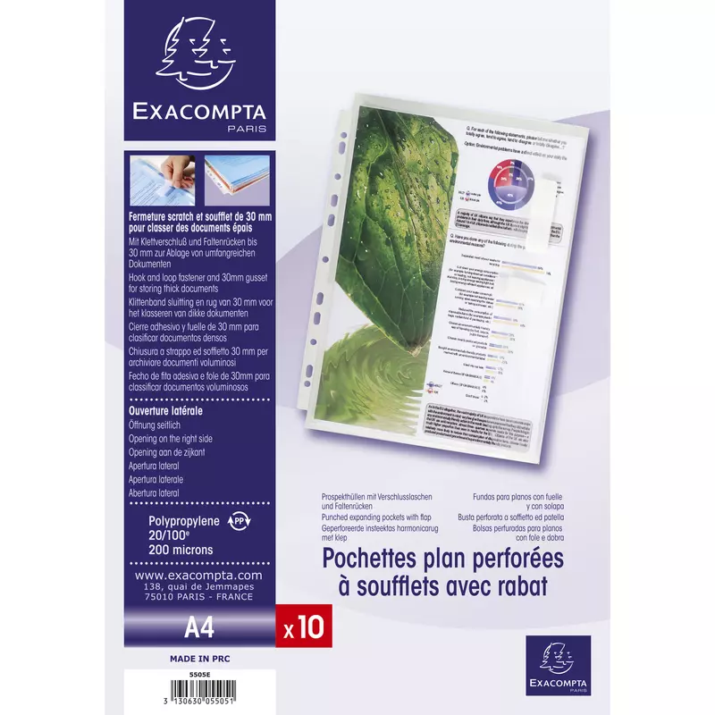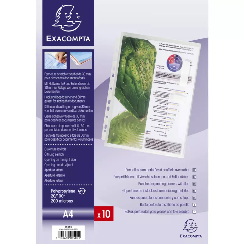 Beutel mit 10 gelochten Schutzhüllen A4, mit Klettverschluss Die