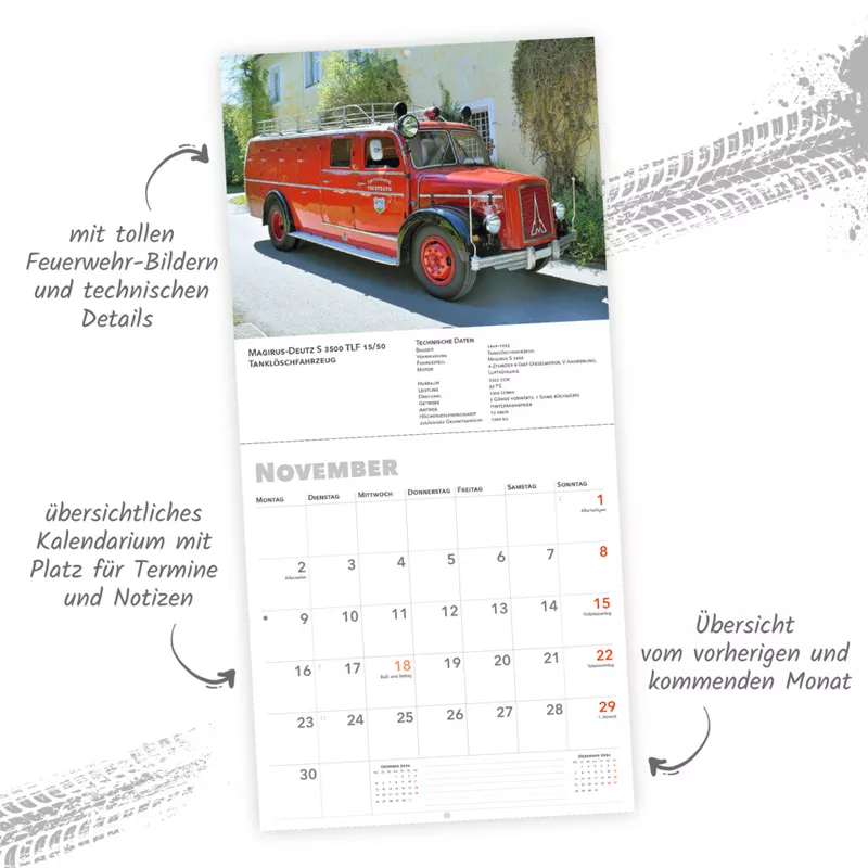 Feuerwehr-Kalender mit monatlichen Motiven und zusätzlichen