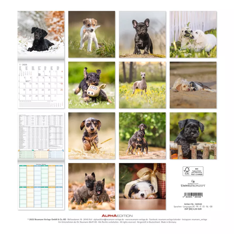 Der Kalender Welpen 2026 von Alpha Edition zeigt zwölf bezaubernde