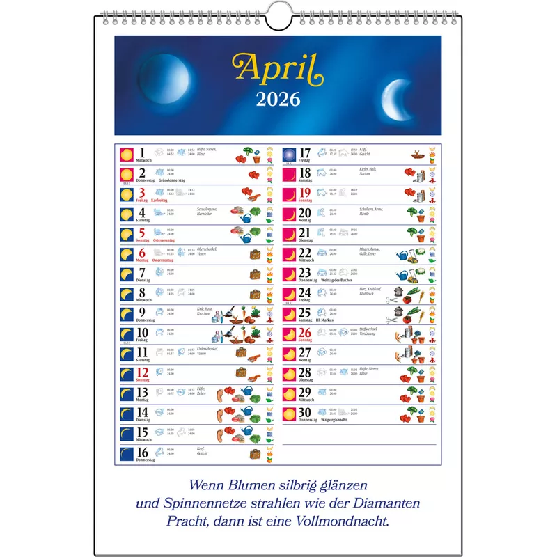 (Typ): Mondkalender · Bindung: Spiralbindung · Breite (cm): 33 ·