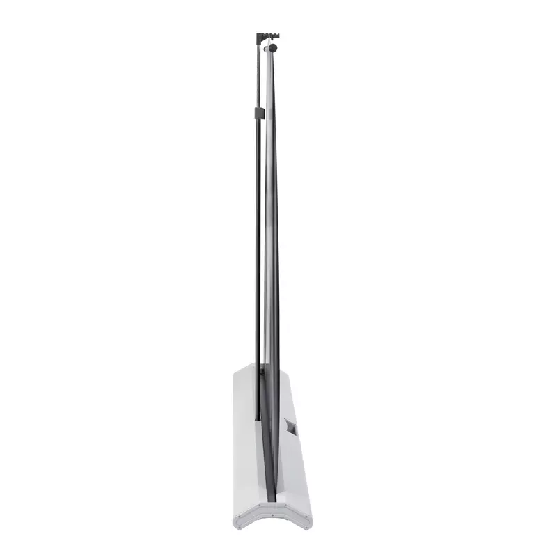 ausladenden Stativfüße, platzsparende Aufbewahrung · Leinwand für