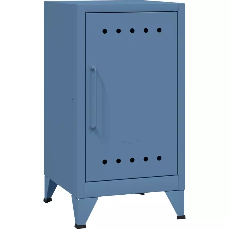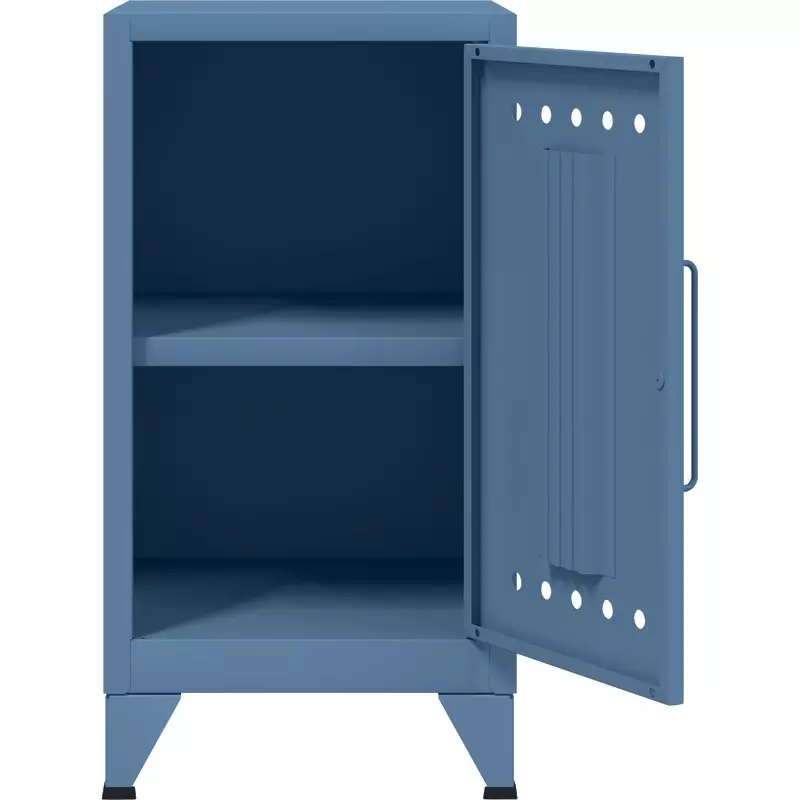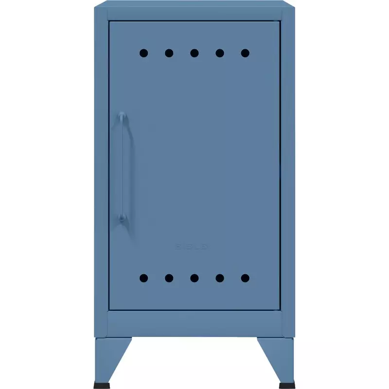 Mini Ablageschrank, rechtsseitig öffnend, mit einem festen Fachboden, aus hochwertigem, nachhaltigem Stahl und mit 16 mm große Design Lüftungslöchern auf allen Türen.