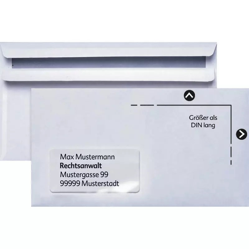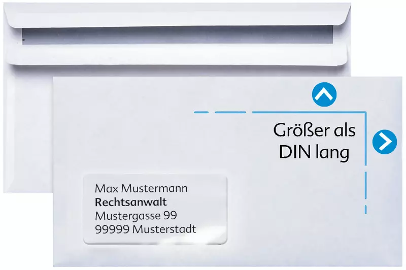 - Mit grauem Flächeninnendruck – verhindert das Durchscheinen des Briefinhaltes