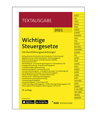 Eine steuerliche Aus- oder Weiterbildung ohne die „Wichtigen Steuergesetze“ aus dem NWB-verlag sind einfach undenkbar. Diese und weitere Textausgaben, wie z. B. „Wichtige Steuerrichtlinien“ oder „Wirtschaftsgesetze“, erscheinen jährlich in Neuauflage und bieten somit eine hohe Aktualität für die tägliche Praxis.