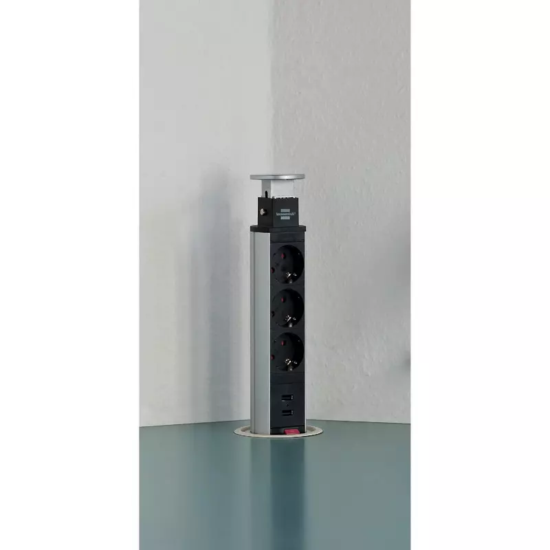 Produktinformationen "brennenstuhl Tower Power USB-Charger, 2 USB-Ladebuchsen, 3 Steckdosen, in Tischplatte versenkbar"