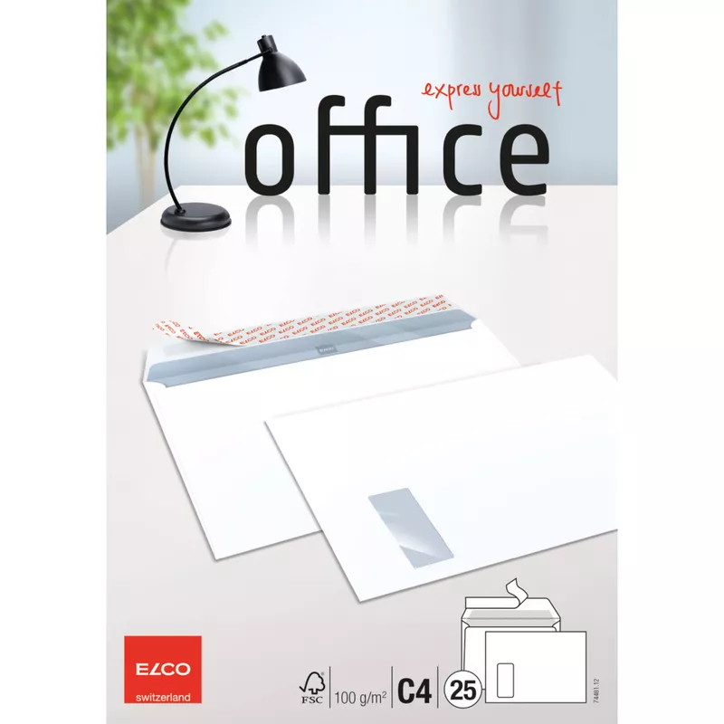 Briefumschlag Office mit Fenster, C4, 100g/m², haftklebend, 25 Stück, weiß ELCO 74481.12