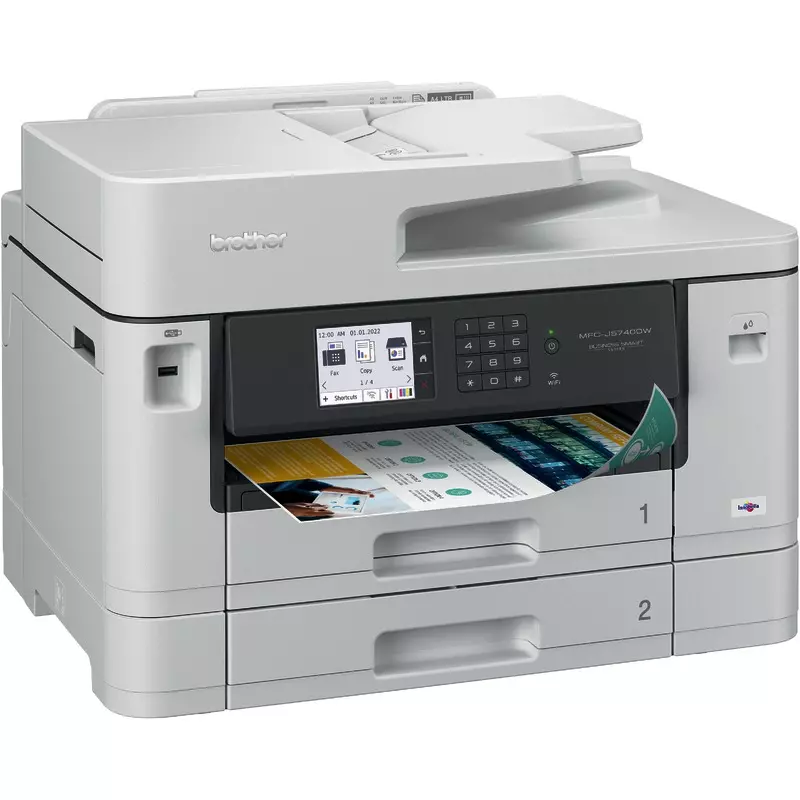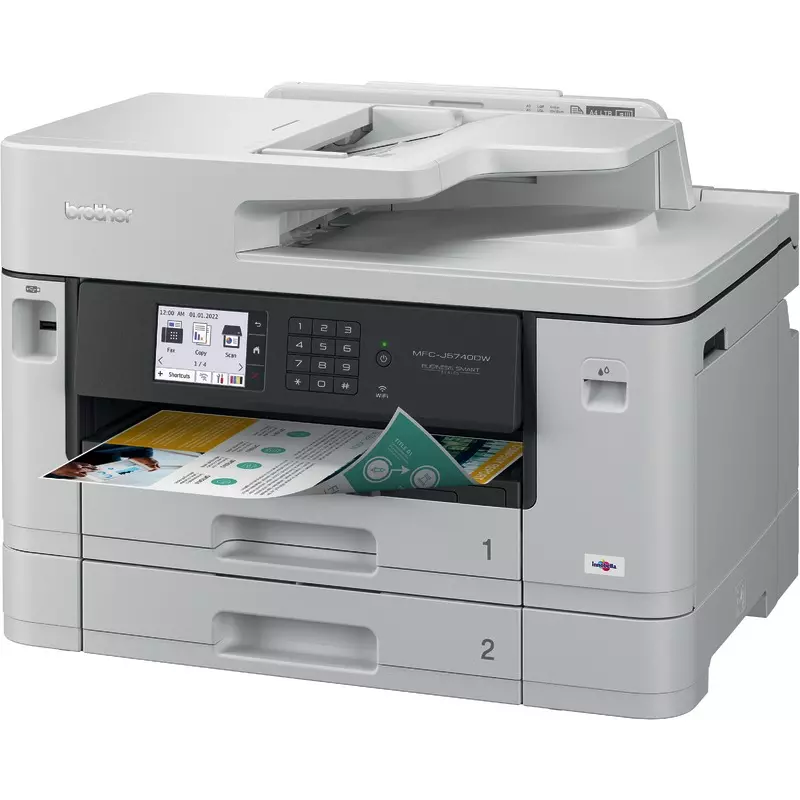 Auch das Druckbild überzeugt: Mit einer maximalen Druckauflösung von 4.800 x 1.200 dpi stehen gestochen scharfe Ausdrucke zur Verfügung. Dank seiner Kompatibilität mit Netzwerken lässt sich das Farb-Tintenstrahl Multifunktionsgerät MFC-J5740DW von Brother einfach und problemlos in Ihre bestehende Arbeitsumgebung integrieren.