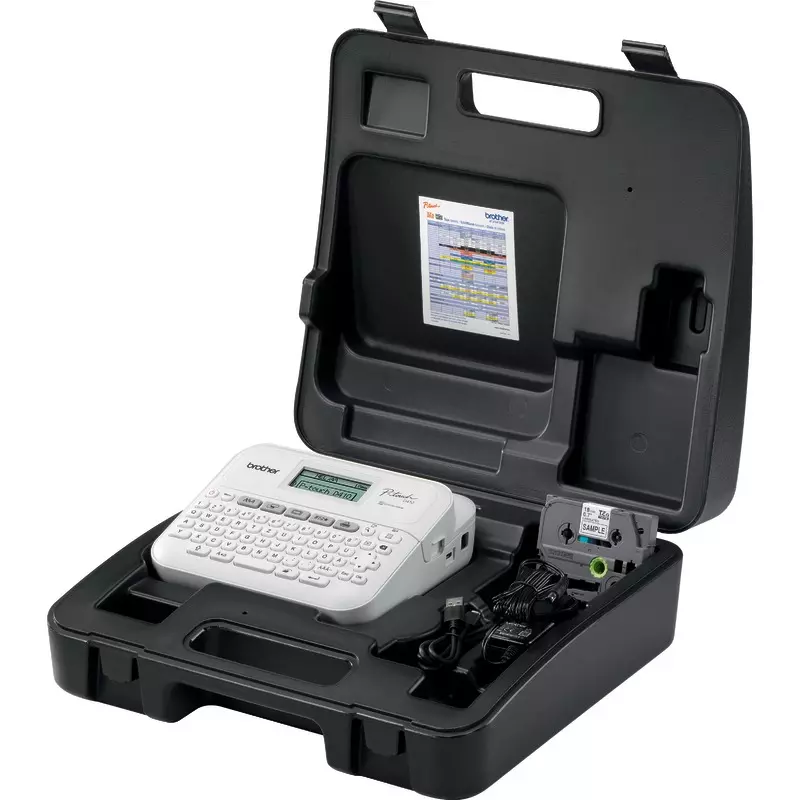 - Inkl. Schriftbandkassette, Netzadapter, Transportkoffer und USB-Kabel