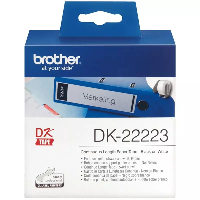 Brother DK-22223. Produktfarbe: Weiß, Etikettentyp: DK. Abmessungen