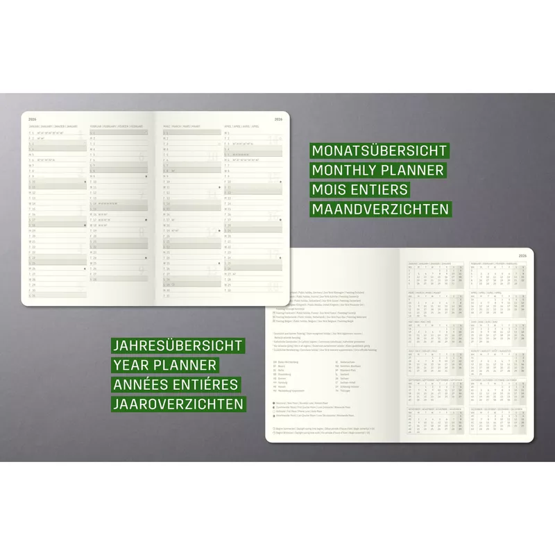 Zulassungen: PEFC · Kalenderaufteilung: 2 Seiten = 1 Woche ·