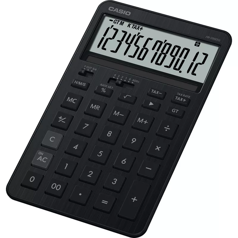 Der CASIO® JW 200DQ ist ein leistungsfähiger Tischrechner für präzise Büro und Finanzaufgaben. Sein 12 stelliges LC Display mit Tausenderunterteilung sorgt für klare Ablesbarkeit, während die ergonomisch geformten Tasten ein angenehmes und schnelles Arbeiten ermöglichen. Mit Funktionen wie Steuer und Zeitberechnung, Profi Prozentrechnung inklusive Mark Up sowie Quadratwurzel ist der Rechner ideal für vielseitige tägliche Berechnungen geeignet.