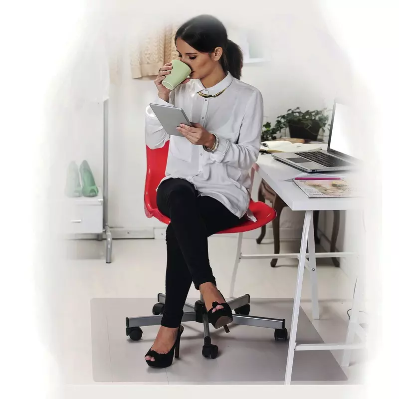 | ergonomische Gestaltung: | Leicht gleitende Oberfläche für Stuhlrollen, um die Ermüdung von Beinen und unterem Rücken zu verringern. |