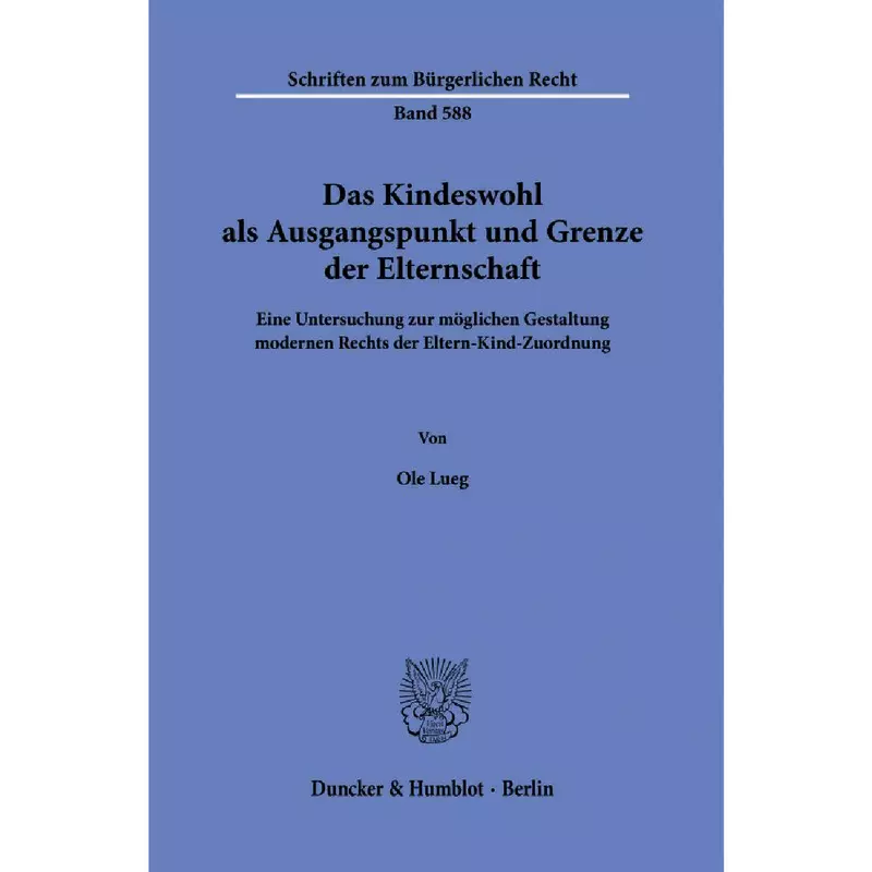 Eine grundlegende Reform der §§ 1591 ff. BGB wird insofern nicht nur gesellschaftlich-politisch, sondern auch vielfältig in der Rechtswissenschaft gefordert. Die Arbeit betont die Notwendigkeit, das Kindeswohl in den Vordergrund eines »Rechts der Eltern-Kind-Zuordnung« de lege ferenda zu stellen.