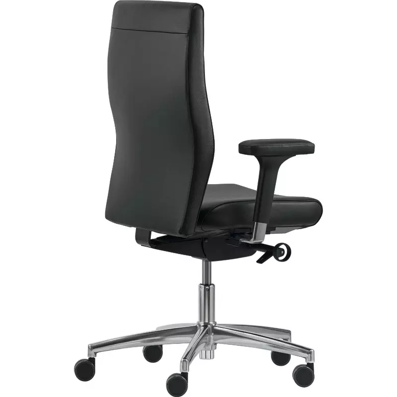 Die höhenverstellbare Vollpolster-Rückenlehne sorgt durch die der Wirbelsäule nachempfundenen Kontur und ergonomischen Komplettausstattung für beste Unterstützung beim Arbeiten.