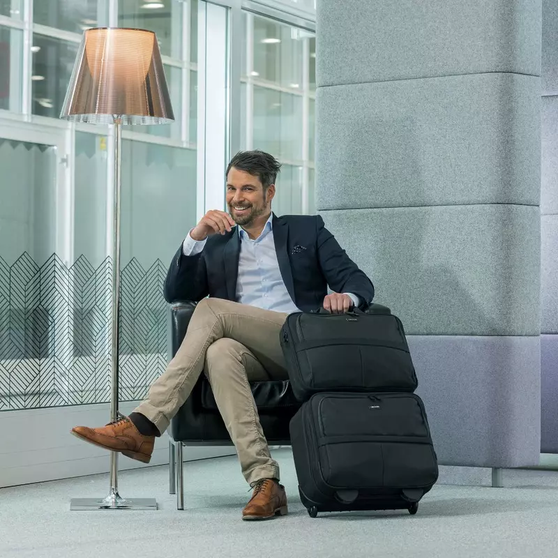 Der Trolley bietet Stauraum für Kleider und Zubehör, schützt Ihre Geräte ausgezeichnet und ist leicht zu tragen. Perfekt für alle, die viel unterwegs sind und mit einer umweltfreundlichen Tragelösung die sinnvolle Wiederverwendung von PET Flaschen unterstützen möchten.