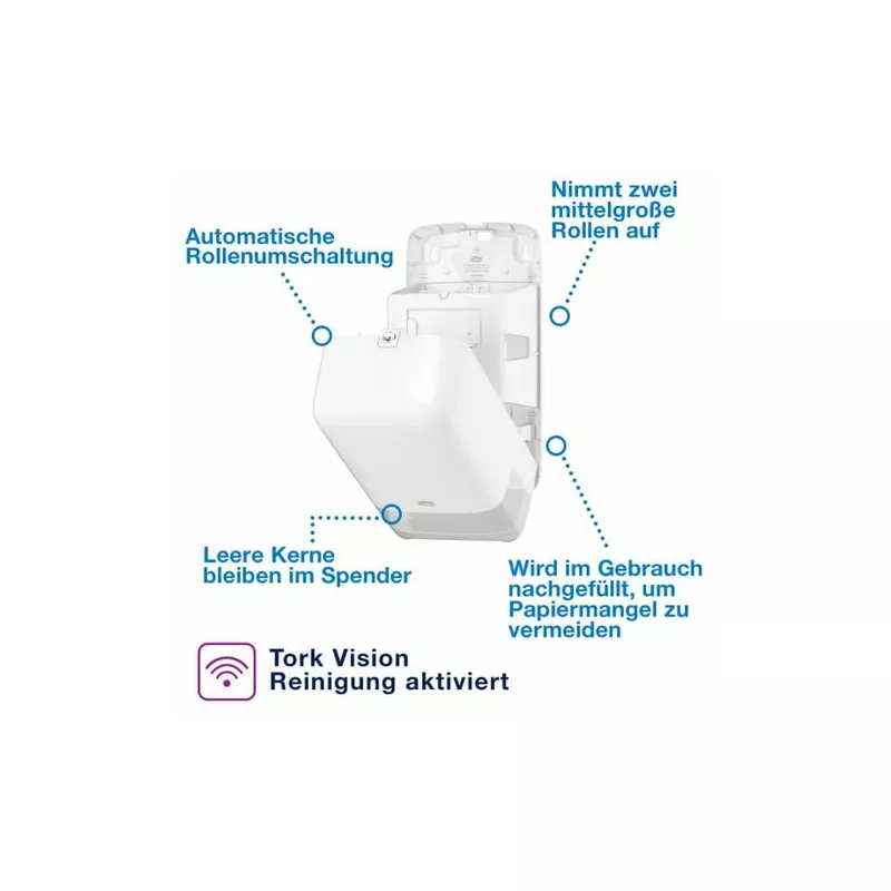 Produktinformationen "Doppelrollenspender T6 für Midi Toilettenpapier, weiß TORK 557500"