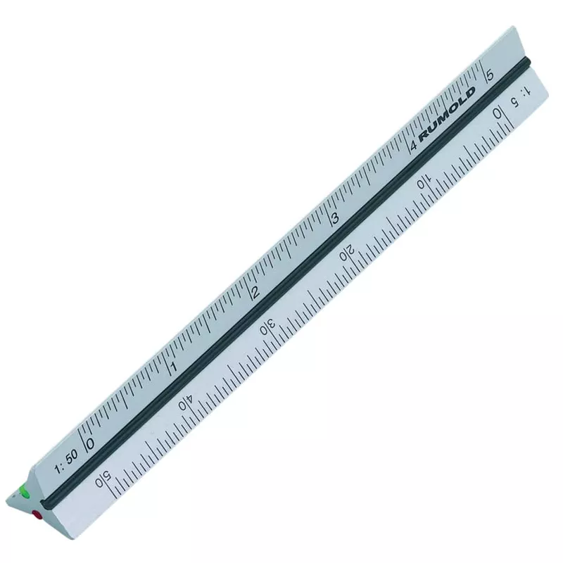 Dreikantmaßstab, Aluminium, 3 farbige Hohlkehlen, Ø 14 mm, 15 cm, Teilung architect 1 RUMOLD 195/1/15