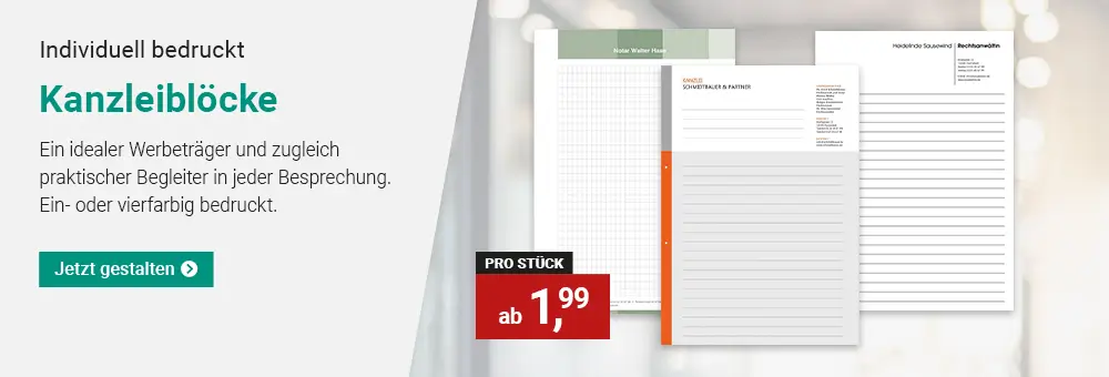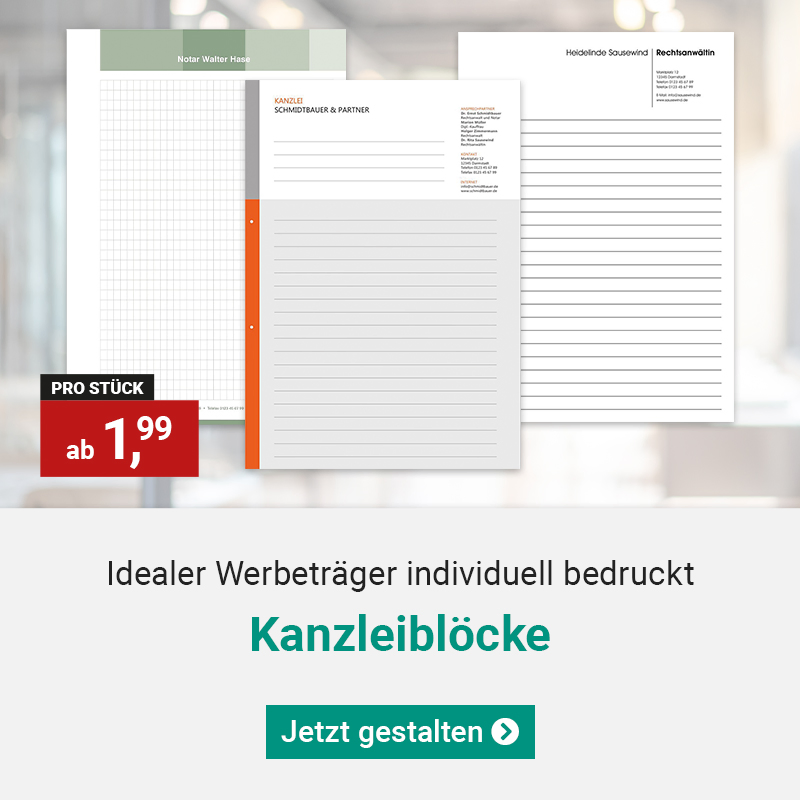 Wir kennen die beruflichen Richtlinien und helfen Ihnen bei der Auswahl Ihrer Kanzlei-Drucksachen.