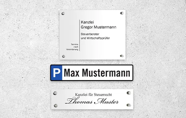 Individuelle Acrylglas- oder Alumiumschilder für den Innen- und Außenbereich.