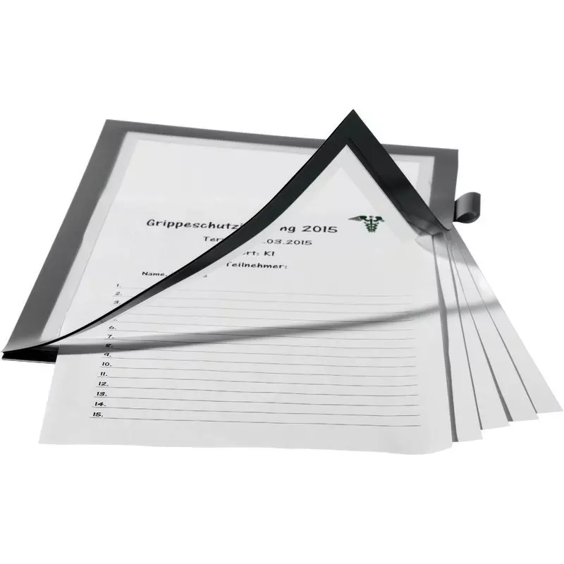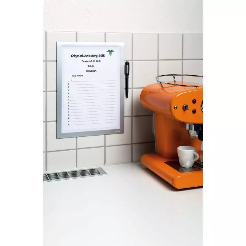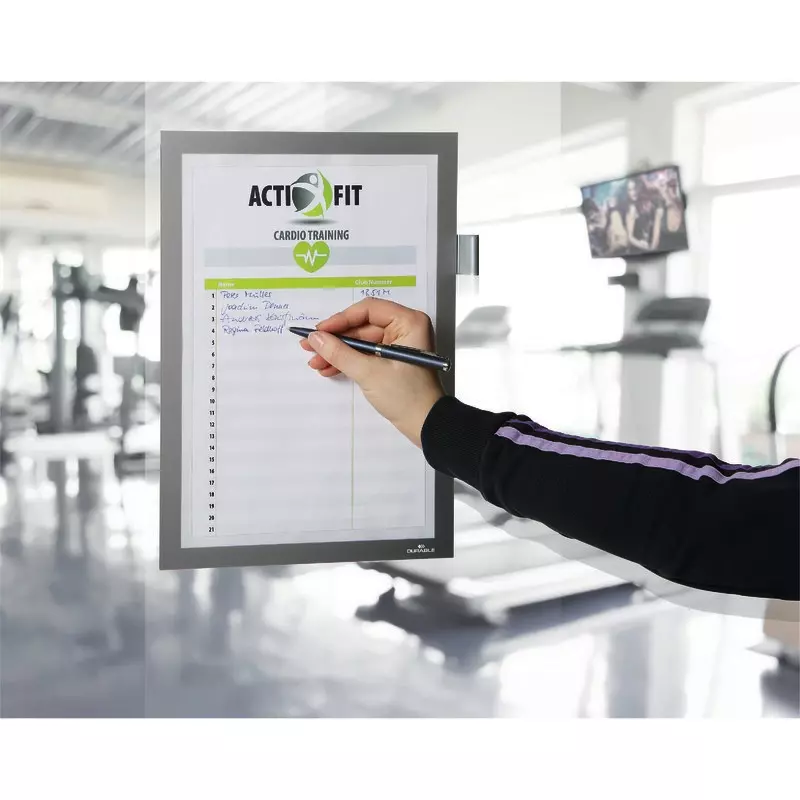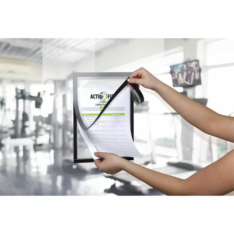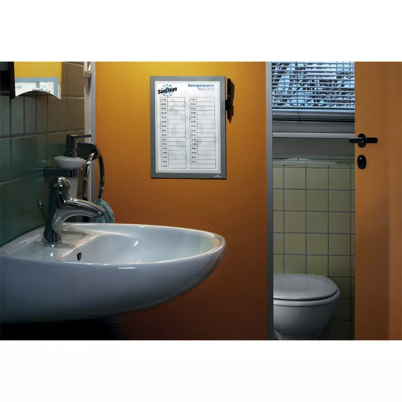 Ihre Infos perfekt in Szene gesetzt. Einfaches Anbringen ohne Hilfsmittel auf glatten, tragfähigen Oberflächen. Schnelles Einlegen und Auswechseln von Dokumenten durch aufklappbaren Magnetrahmen. Ideal für Reinigungspläne in Sanitäranlagen, Anmeldungen zu Veranstaltungen oder zum Erfassen und Dokumentieren von Informationen, Arbeitsabläufen und Servicedienstleistungen wie Wartungen oder Sicherheitsprüfungen.
